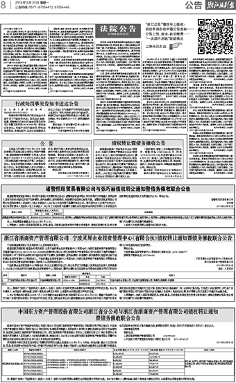 中国东方资产管理股份有限公司浙江省分公司与浙江省浙商资产管理有限公司债权转让通知 暨债务催收联合公告