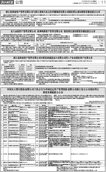 中国光大银行股份有限公司宁波分行与中国信达资产管理股份有限公司浙江省分公司债权转让 暨债务催收联合公告