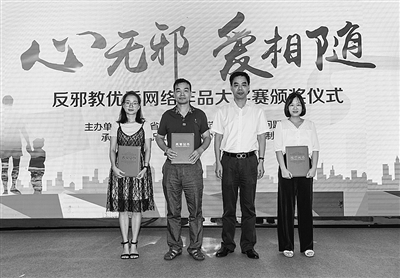 5日上午,以“心无邪,爱相随”为主题的浙江省反邪教优秀网络作品大奖赛颁奖仪式在杭州举行。这次活动由省人民政府防范和处理邪教问题办公室主办,浙江省反邪教协会、浙江法制报社承办。