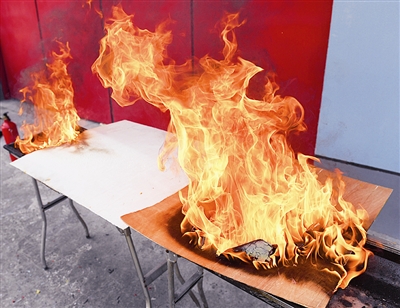 9月5日上午,湖州消防支队开发区大队进行了一次装修材料防火性能的对比测试实验,结果发现,普通的装修材料竟然是火灾的“帮凶”。