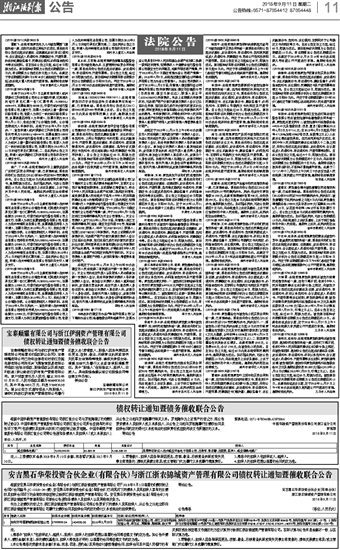 宝泰顺耀有限公司与浙江伊润资产管理有限公司 债权转让通知暨债务催收联合公告