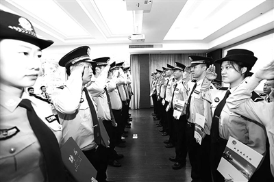 近日,平阳县公安局举办了以“关爱民警、弘扬精神、展望未来”为主题的“爱警日”活动暨首届警察文化艺术节,表彰了首届“平阳最美警察”,还举行新警入警拜师、民警授衔、民警退休等仪式。丰富多彩的活动,充分展示了民警风貌,也拉进了警民距离。同时,该局各单位也因地制宜开展特色活动,如县交警大队举行仪式,表彰“十佳交警”“二十佳辅警”。图为拜师仪式上,新警向老警拜师学技。
