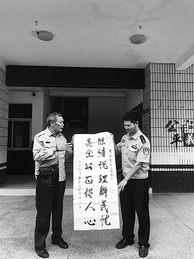 事后,老郭找到陈亮说:“对于纠纷的处置结果,我和对方要说很满意,是不可能的,肯定有心理差距。但是看到你们不厌其烦地做劝导工作,我是挺感动的。”当时老郭就说,要给派出所民警写幅字以表感谢。