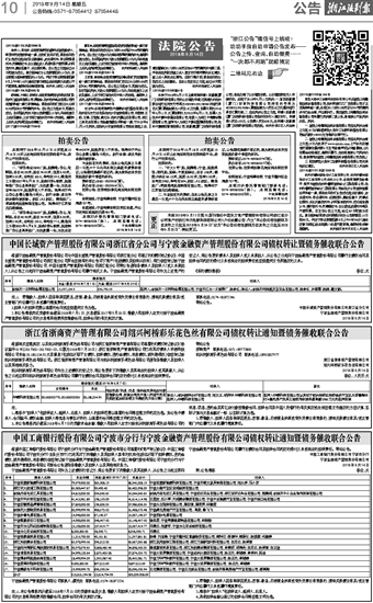中国长城资产管理股份有限公司浙江省分公司与宁波金融资产管理股份有限公司债权转让暨债务催收联合公告