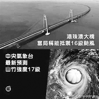 网传港珠澳大桥可能抵挡不住“山竹” 中国气象局:假的!