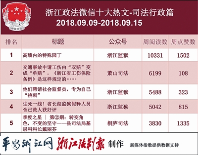 “浙江监狱”表现突出,位列榜单第一,他家的《高墙内的特殊园丁》一文让人印象深刻,获得阅读量和点赞量双双第一。