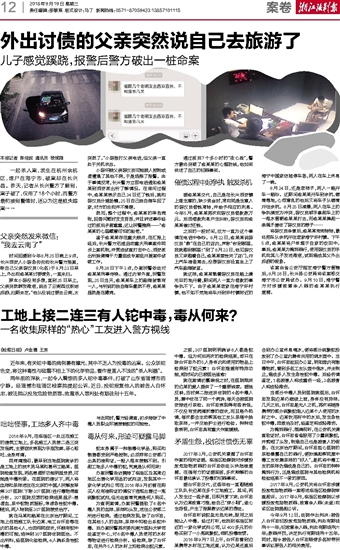 就在马某和路某在北京治疗期间,工地上包括施工队长边某、电工白怀忠等在内的其他4人,也因相同症状,怀疑有铊中毒的可能,结伴到307医院住院医治。不出所料,经医院化验检测,4人确系急性铊中毒。