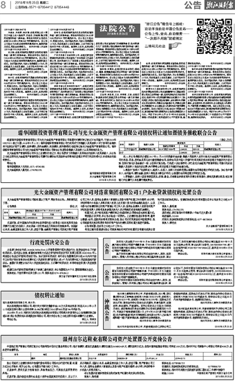 瑞华国银投资管理有限公司与光大金瓯资产管理有限公司债权转让通知暨债务催收联合公告