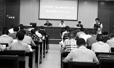 今年7月13日,在县综治委的召集下,全县决胜“基本解决执行难”暨执行联动工作会议在海盐法院召开,“党委领导、人大监督、政府支持、法院主办、部门配合、社会参与”的大格局进一步完善。8月1日,县综治委出台了《海盐县执行工作联动协调机制实施办法》,为执行联动再添一把火。