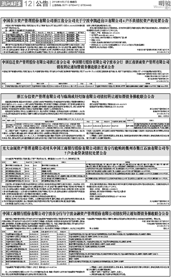 中国工商银行股份有限公司宁波市分行与宁波金融资产管理股份有限公司债权转让通知暨债务催收联合公告