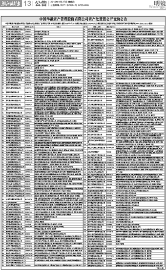 中国华融资产管理股份有限公司资产处置暨公开竞价公告