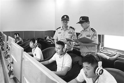 近日,台州黄岩警方开展“净网行动”,加强对网吧的巡查管理,防止出现治安隐患和安全漏洞。图为网警来到东城一家网吧,检查实名制登记制度的落实情况。