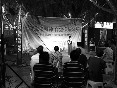 近日,一场以“弘扬宪法精神,自觉抵制邪教”为主题的反邪教文艺巡回演出,在金华婺城区城中街道西市街上举行。