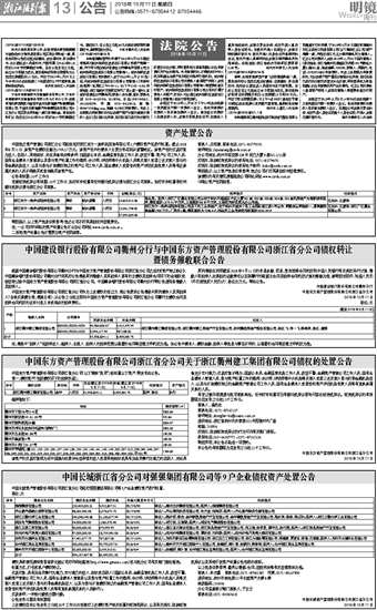 中国建设银行股份有限公司衢州分行与中国东方资产管理股份有限公司浙江省分公司债权转让 暨债务催收联合公告