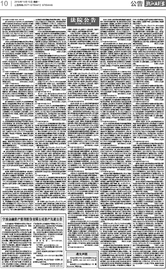 勿雷热古木:本院受理的原告中安金控资产管理有限公司与被告勿雷热古木金融不良债权追偿纠纷一案,现依法向你公告送达起诉状副本、证据副本、应诉通知书、举证通知书、庭前调解通知书、开庭传票、风险提示书、廉政监督卡、外网查询告知书、上网公布裁判文书的范围、诉讼权利义务告知书、适用简式裁判文书告知书、送达地址确认书及民事裁定书(程序转换)。自公告之日起经过60日,即视为送达。提出答辩状和举证的期限均为公告期满后的15日内。并定于2019年1月4日上午9时00分在本院第九审判庭公开开庭审理,逾期将依法缺席裁判。温州市瓯海区人民法院