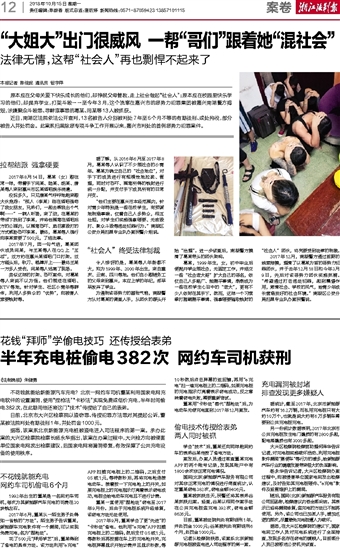 半年充电桩偷电382次 网约车司机获刑