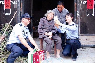 近日,临海市公安局汛桥派出所民警了解到部分群众的需求后,上门看望空巢老人并提供“亲情视频服务”,用手机让老人和儿女视频连线,交流亲情。