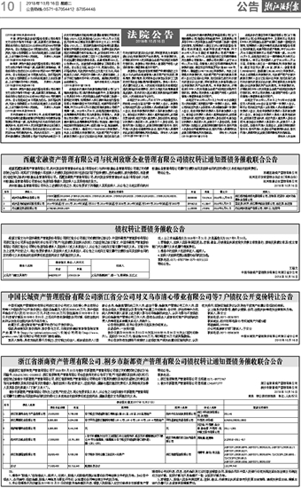 浙江省浙商资产管理有限公司、桐乡市新都资产管理有限公司债权转让通知暨债务催收联合公告