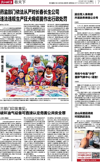药监部门依法从严对长春长生公司 违法违规生产狂犬病疫苗作出行政处罚