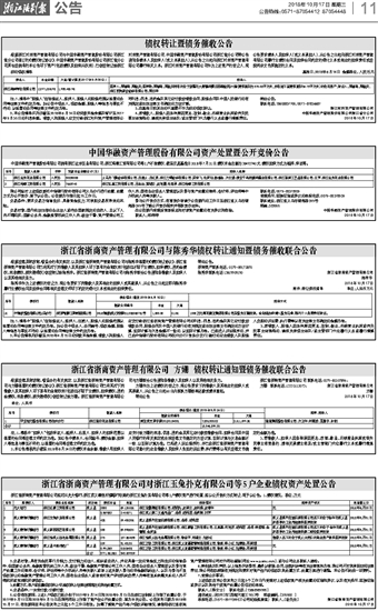 浙江省浙商资产管理有限公司 方姗 债权转让通知暨债务催收联合公告