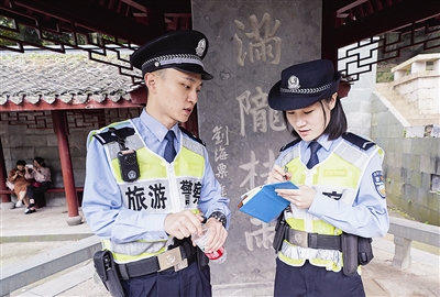 “今天还算平稳的,只处理了交通拥堵和游客纠纷。其实,游客走失、财物被盗等警情也时有发生的。另外,我们还要适时提醒游客防盗防骗。每次巡逻都很充实呢!”