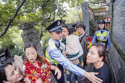 尽管花香四溢,可游客多了难免会产生一些不和谐的小插曲。刚解决了交通问题,金建达的对讲机里就传来了出警指令:下满觉陇125号觉庐茶馆附近有游客发生纠纷。