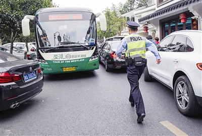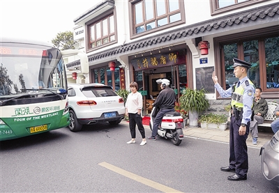“满觉陇路本来就窄,游客多了,车辆也多,像刚才这种拥堵,如果不及时处理疏通,车辆就会越堵越多。”金建达对记者说,“所以,我们有时候要变身‘交警’。”