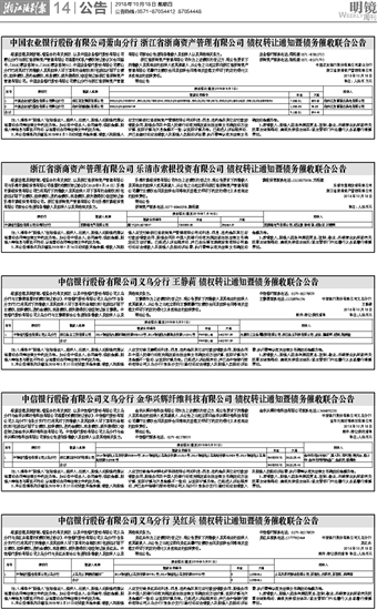 中信银行股份有限公司义乌分行 王静莉 债权转让通知暨债务催收联合公告