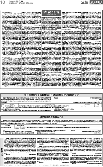 绍兴草隐珠宝首饰有限公司与金矫剑债权转让暨催收公告