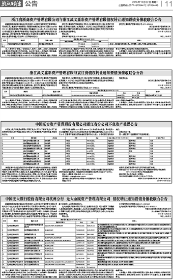 中国光大银行股份有限公司杭州分行 光大金瓯资产管理有限公司 债权转让通知暨债务催收联合公告