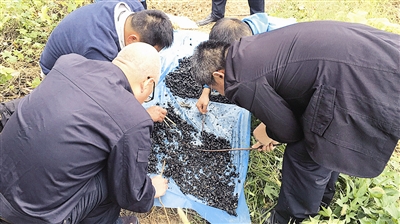 | 侦查人员从淤泥中寻找头发、牙齿、碎骨 |