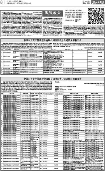 中国东方资产管理股份有限公司浙江省分公司债务催收公告
