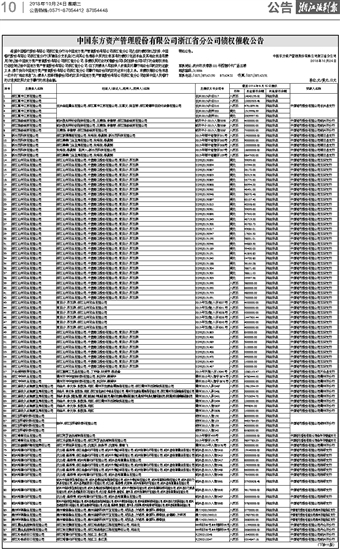 中国东方资产管理股份有限公司浙江省分公司债权催收公告