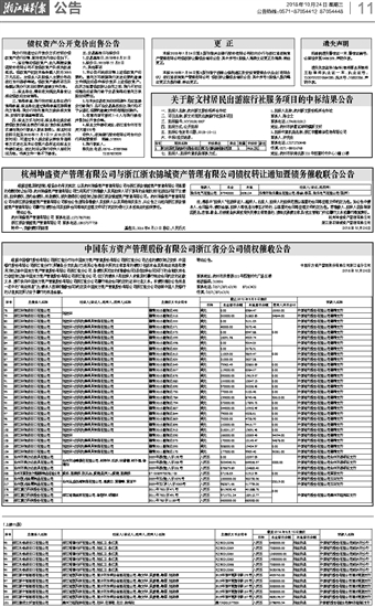 中国东方资产管理股份有限公司浙江省分公司债权催收公告