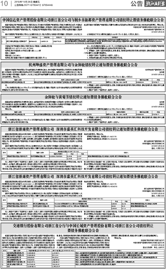 交通银行股份有限公司浙江省分行与中国长城资产管理股份有限公司浙江省分公司债权转让 暨债务催收联合公告