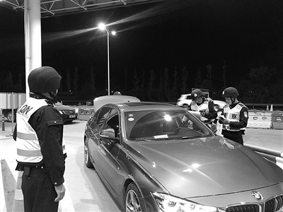 | “雷霆3号”行动中,萧山警方设卡盘查。 |