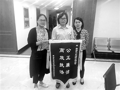 一起买卖合同纠纷案件中,被执行人是一家远在广东的电气公司,多年来向西湖区一家电子科技公司购买变压器保护测控装置等物品,前后拖欠了近10万元货款。广东公司的法定代表人早已“销声匿迹”,经营地也人去楼空。王崝通过线上查控系统、电话联系当地相关部门,均未发现任何财产线索。对照标准,这是一起完全符合终结本次执行程序的案件。但王崝没有就此结案,她一次次联系申请人,找寻新的突破口。辗转间申请人提供了法定代表人一个亲戚的电话。揪着这串号码,王崝没有松手,连续打了几天,号码都烂熟于心。一次,电话终于接通了。抓住这次机会,王崝凭着多年在立案窗口服务群众的工作经验,跟那头的亲戚聊起了家长里短,并循序渐进地从道德层面的守诺践信到法律范畴的利害关系,剥洋葱般地一层又一层讲清法律后果。在这名亲戚的劝说下,被执行人最后连本带利付清了拖欠的全部货款。原本不抱希望的申请人叹服于王崝的执着,特地送来锦旗致谢。