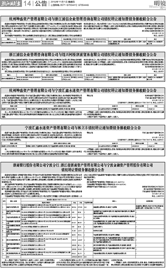 浙商银行股份有限公司宁波分行、浙江省浙商资产管理有限公司与宁波金融资产管理股份有限公司 债权转让暨债务催收联合公告