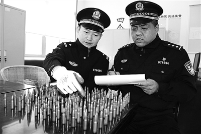 近日,台州市公安局椒江分局开展了打击整治枪爆违法犯罪专项行动,彻底收缴流散于社会的非法枪爆物品,消除枪爆带来的安全隐患。图为11月2日上午,该分局治安大队民警在清点当日收缴的子弹。