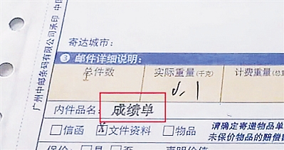 生命与海洋科学学院2017级学生陈曦(化名)告诉记者,家中前几天就已经收到了学校邮寄的成绩单,“当时是我妈妈收的件,她还给我拍了照。”