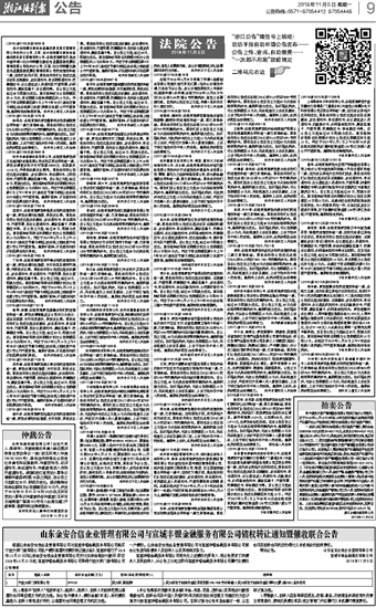 胡锦康、胡六平:本院受理原告天威担保有限公司诉你们追偿权纠纷一案,已审理终结,现依法向你们公告送达(2018)浙0104民初2257号民事判决书。自公告之日起60日内来本院领取民事判决书,逾期即视为送达。杭州市江干区人民法院