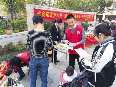 近日,杭州余杭区余杭街道在江南雅居小区开展“平安三率”宣传暨志愿便民服务。平安倡议、法律咨询、鞋包修补、血压测量等活动深受居民欢迎。通讯员 金昌才 摄