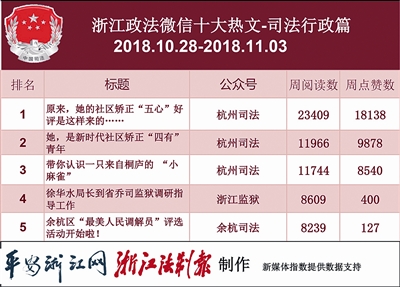 本期司法行政榜上,“杭州司法”位居第一。值得一提的是,“宁波普法”的《宁波最资深普法讲师罗杰从律所主任职位引退,发表“伏枥之言”》一文引发高度关注。“不以物喜、不以己悲、注意安全,呵护家人”,罗杰的隐退之言引人深思。