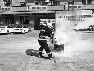 本报讯 为进一步提升江东街道村居、企事业单位消防安全意识,近日,义乌江东街道举行了一次消防业务技能大比武。街道总工会、安监所、消防工作站及村(社区)等单位参加比赛。赛场上,选手们你追我赶、动作灵活、专业娴熟,赢得了现场观众的阵阵喝彩。
