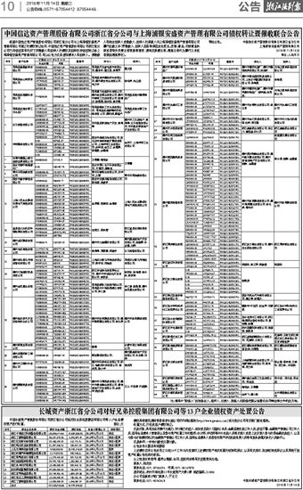中国信达资产管理股份有限公司浙江省分公司与上海浦银安盛资产管理有限公司债权转让暨催收联合公告