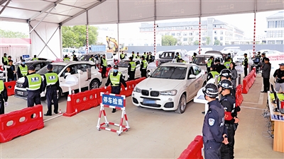 联合国世界地理信息大会召开在即,大会安保工作进行得如何了?昨日,记者前往德清实地查探。图为德清大道西检查站的安检情形,这个检查站拥有4条检查车道,采用智能探测仪、车牌自动识别关联装置等核验设备进行安检。