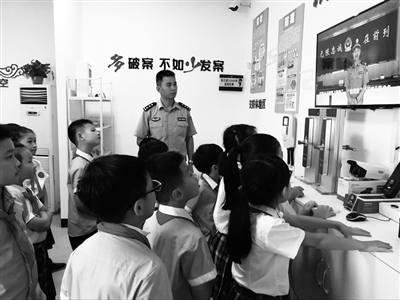 近日,苍南县公安局龙港分局沿江警务站迎来一批特殊客人——江南实验小学的学生。他们在民警的带领下,学习了防盗、防火、防骗等基本常识。龙港分局根据“固本强基”总体部署,将社区警务室升格为网格警务站,让广大群众分享“枫桥经验”成果。警务站配备有纠纷化解室、视频监控室、安防体验室等功能室,全天候为广大群众提供“一站式”服务。