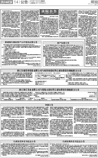浙江东鼎投资股份有限公司与阎崇俊债权转让通知暨债务催收联合公告