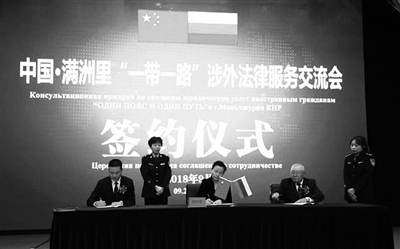 本报讯 最近举行的“中国·满洲里‘一带一路’涉外法律服务交流会”上,义乌市司法局与满洲里市司法局签署了全面合作战略协议。随后,义乌市律师协会与满洲里市律师协会、俄罗斯布里亚特共和国律师协会签署了两国三地关于中俄法律服务合作联盟协议,义乌市公证处与满洲里恒信公证处、俄罗斯布里亚特共和国公证协会共同签署了两国三地中俄公证法律服务合作备忘录,浙江近真律师事务所与内蒙古缘合律师事务所、俄罗斯布里亚特共和国律师事务所签署了合作协议。至此,两地沟通长达一年的对俄贸易法律服务工作取得了突破性进展,义乌商城“一带一路”法律服务联盟得以发展壮大。