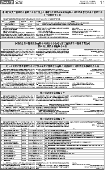 中国信达资产管理股份有限公司浙江省分公司与浙江省浙商资产管理有限公司 债权转让暨债务催收联合公告